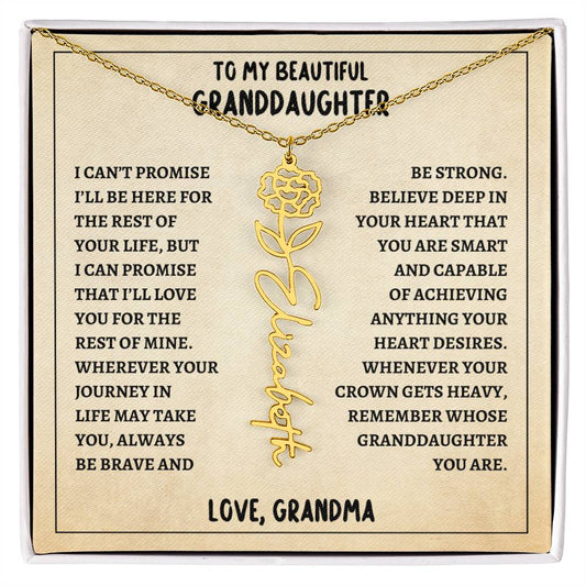 To My Granddaughter, Always Be Brave & Strong Love Grandma Flower Name Necklace