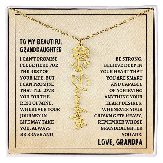 To My Granddaughter, Always Be Brave & Strong Love Grandpa Flower Name Necklace