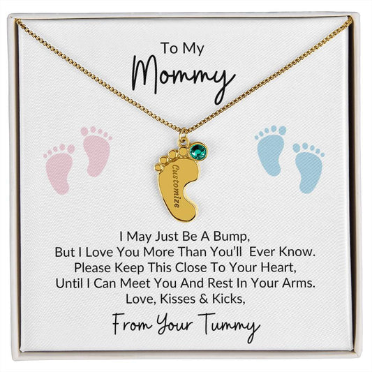 To My Mommy, From Your Tummy | Personalized Baby Feet Necklace