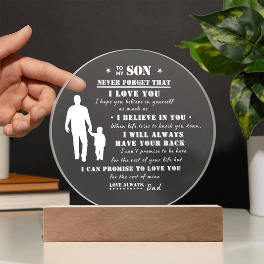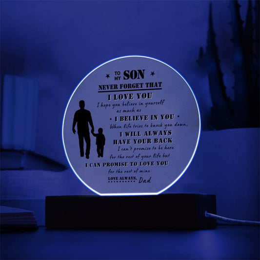 To My Son | Never Forget That I Love You Acrylic LED Nightlight (Black Design)