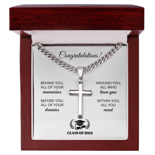 Behind You | Graduation Gift (Cuban Chain/Artisan Cross Necklace)