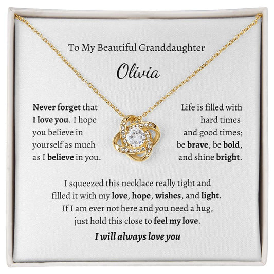 To My Beautiful Granddaughter, I Will Always Love You Love Knot Necklace