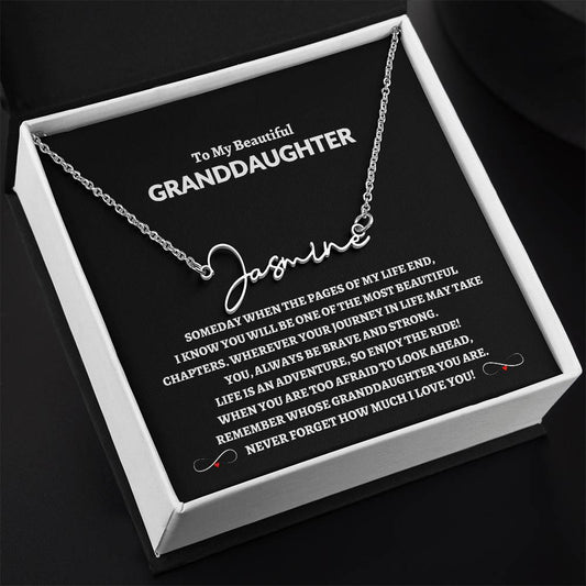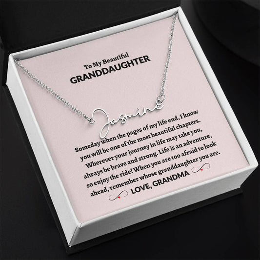 To My Beautiful Granddaughter | Love Grandma Signature Style Name Necklace