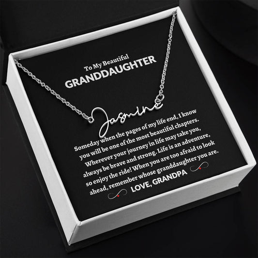 To My Beautiful Granddaughter | Love Grandpa Signature Style Name Necklace