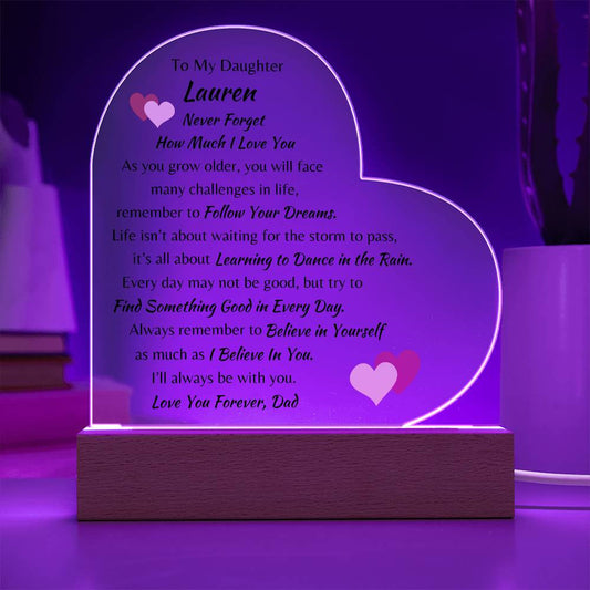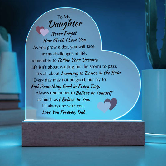 To My Daughter, Love Forever Dad Acrylic LED Heart Plaque