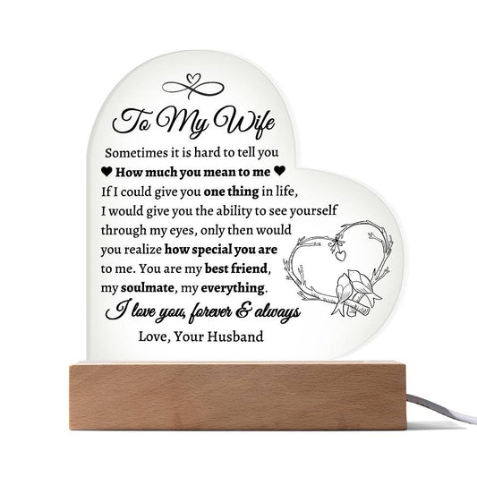 To My Wife, One Thing In Life Acrylic LED Heart Plaque