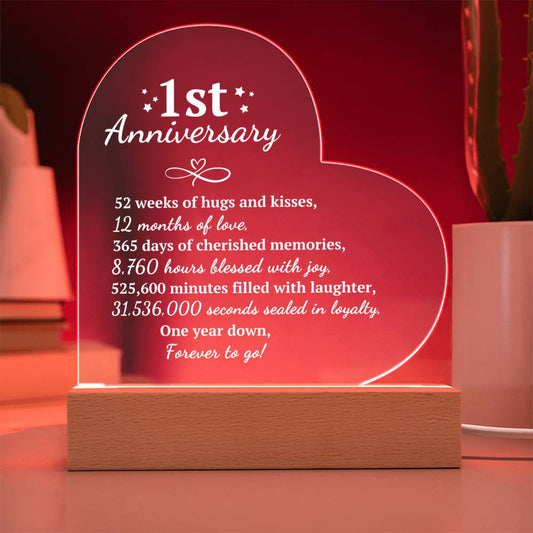 1st Anniversary | Forever To Go Acrylic LED Heart Plaque