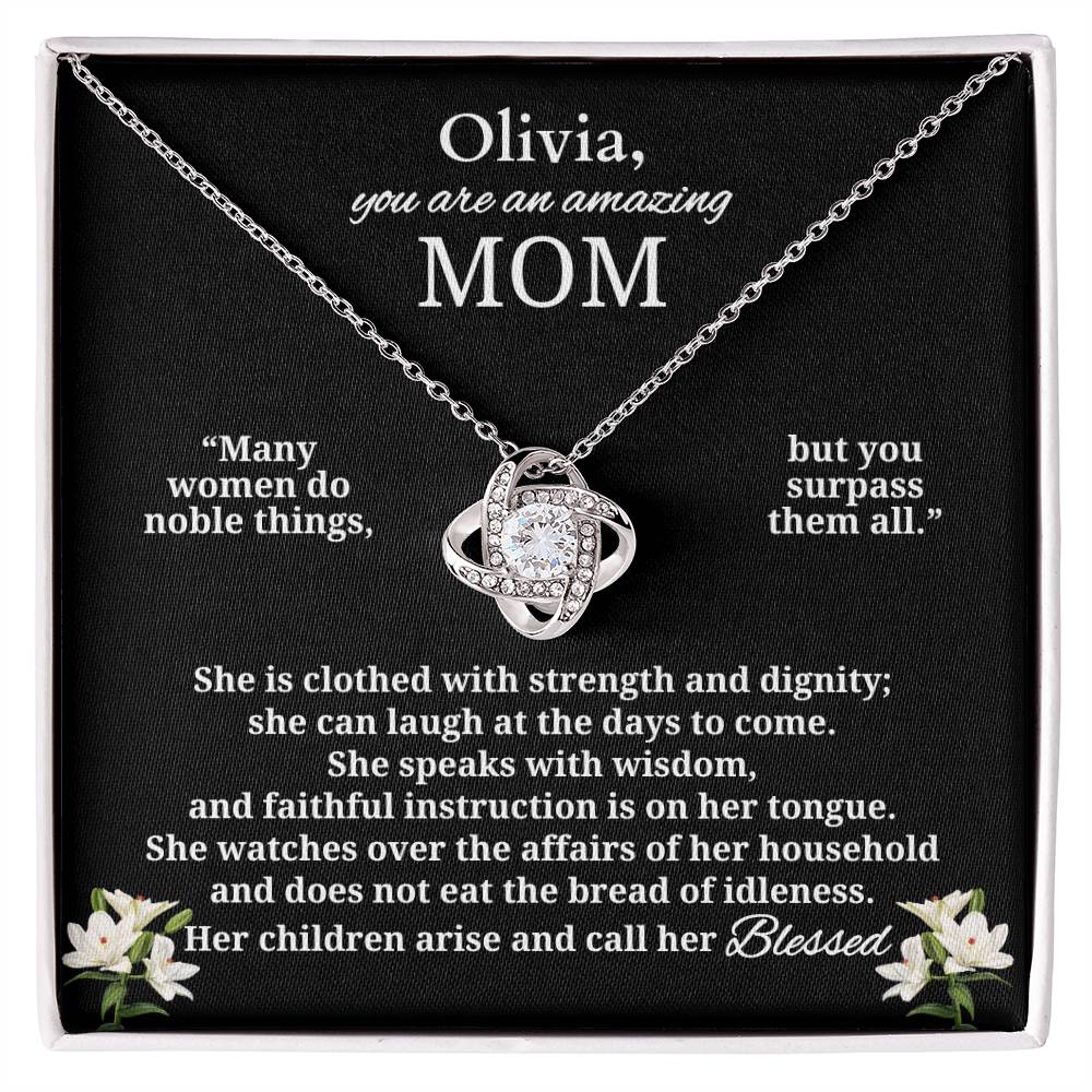 To An Amazing Mom | Blessed Personalized Necklace (from Proverbs 31)