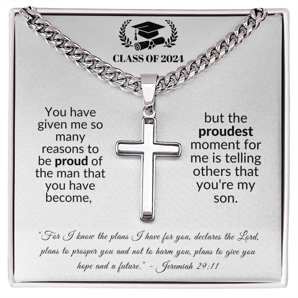 Proudest Moment | Graduation Gift for Son (Cuban Chain/Artisan Cross Necklace)