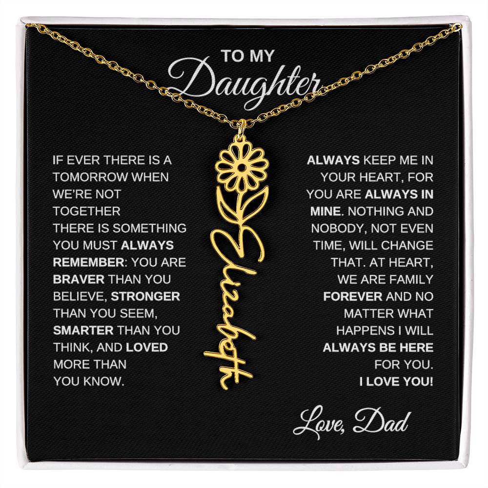 Need a gift that's as unique as she is? Then look no further than our Flower Name Necklace! Personalized just for her, she'll carry with her the love and pride of her father. Whether it's for a birthday, graduation, Christmas, or any special occasion, this name necklace is the perfect way to express affection with a flower that will not wilt away.
